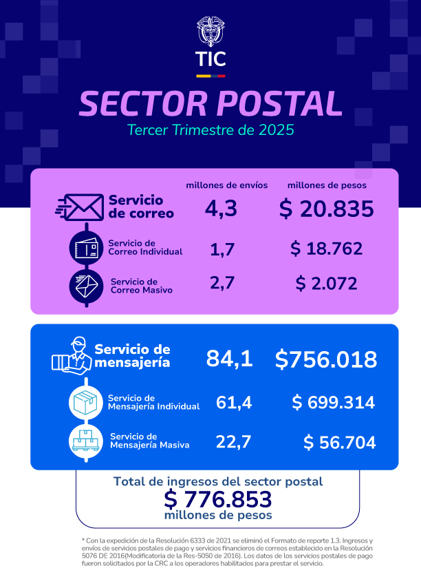 Boletín trimestral Sector Postal - Cifras tercer trimestre de 2025