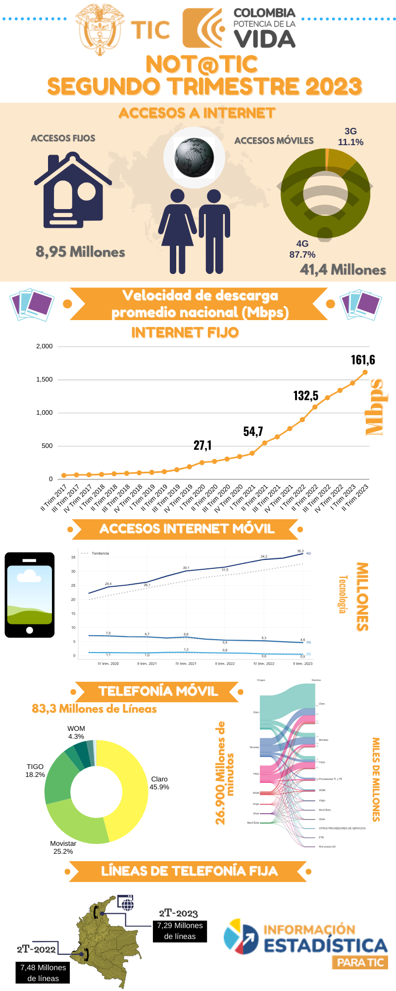 Este boletín es de publicación trimestral y presenta los datos más relevantes de los servicios de telefonía fija-móvil, internet fijo-móvil. En esta edición encontrará la información correspondiente al segundo trimestre de 2023. Para más detalles, consulte los archivos relacionados.