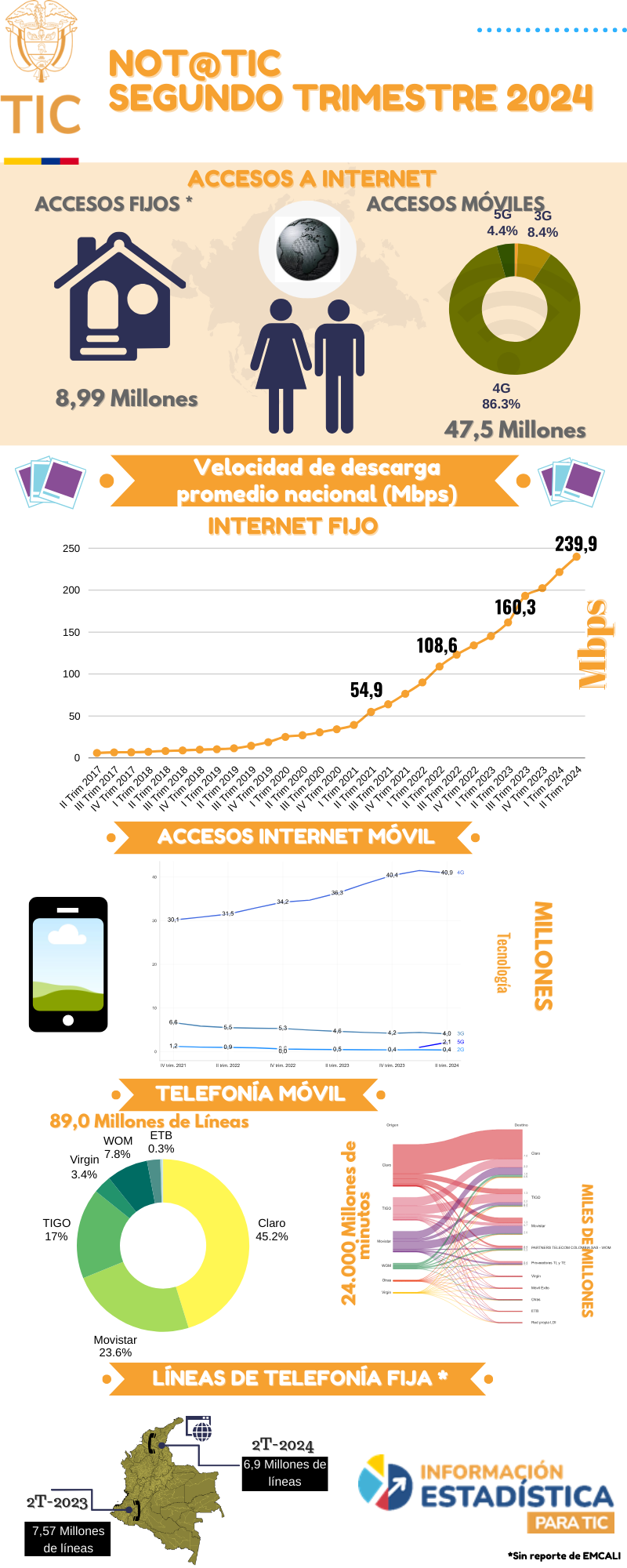 Este boletín es de publicación trimestral y presenta los datos más relevantes de los servicios de telefonía fija-móvil, internet fijo-móvil. En esta edición encontrará la información correspondiente al segundo trimestre de 2024. Para más detalles, consulte los archivos relacionados.