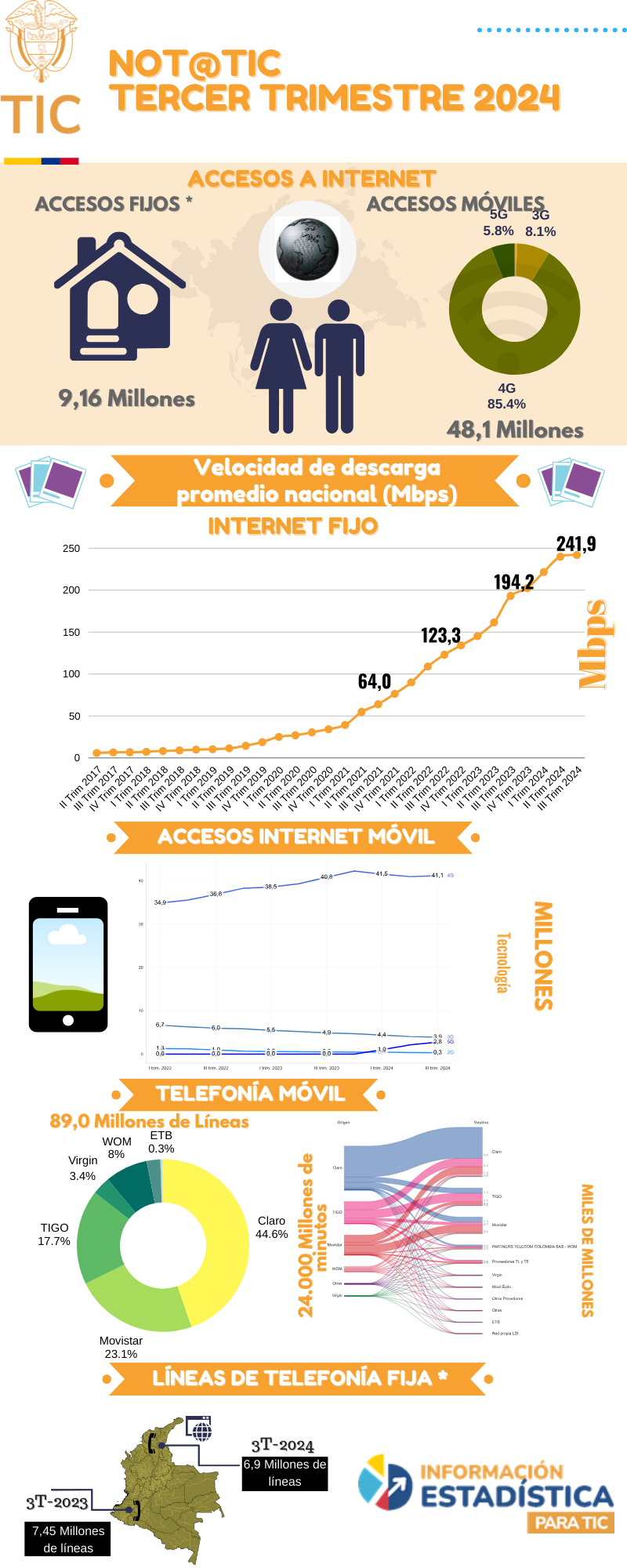 Este boletín es de publicación trimestral y presenta los datos más relevantes de los servicios de telefonía fija-móvil, internet fijo-móvil. En esta edición encontrará la información correspondiente al tercer trimestre de 2024. Para más detalles, consulte los archivos relacionados.