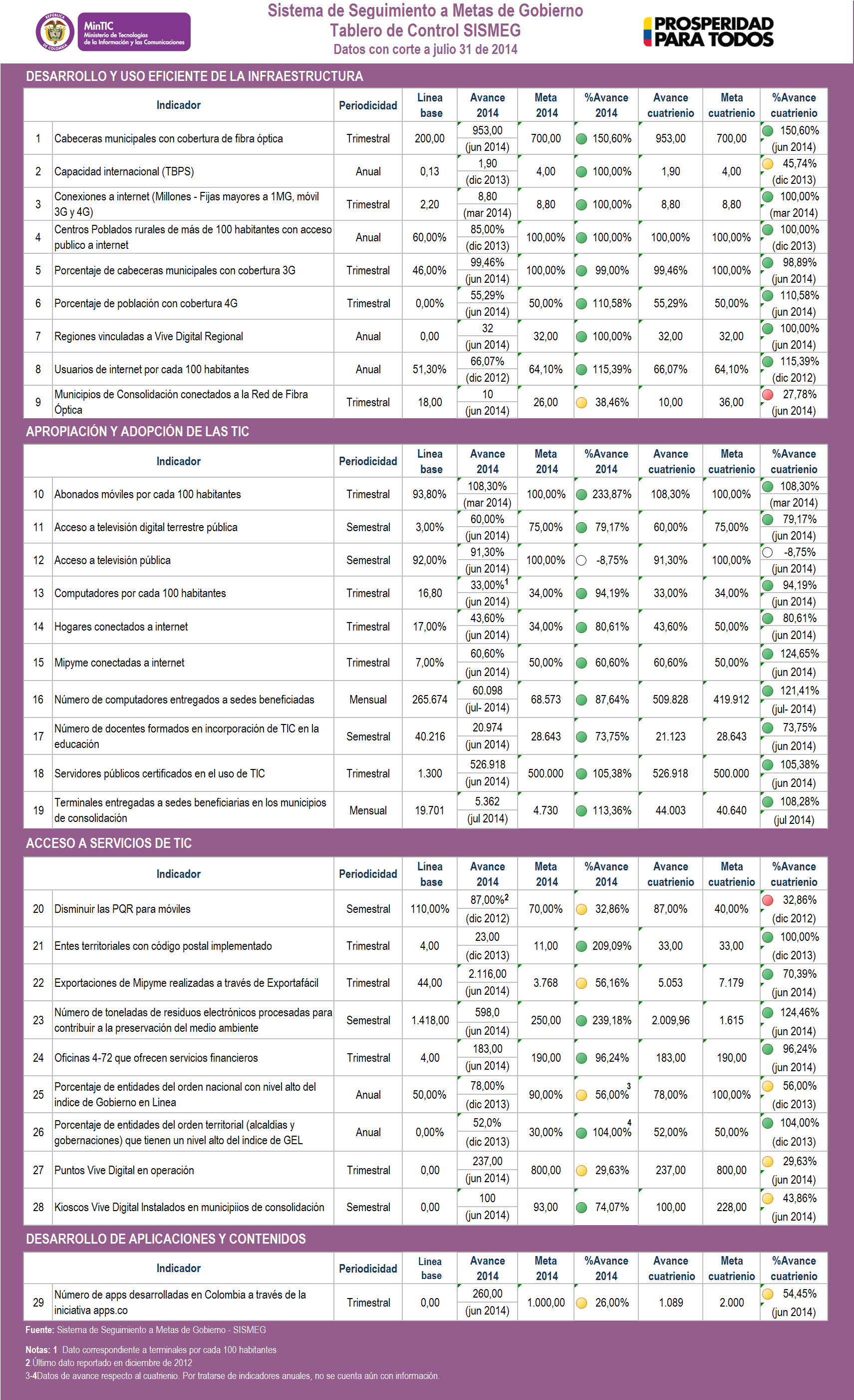 Boletín de Seguimiento a metas de gobierno - Julio 2014